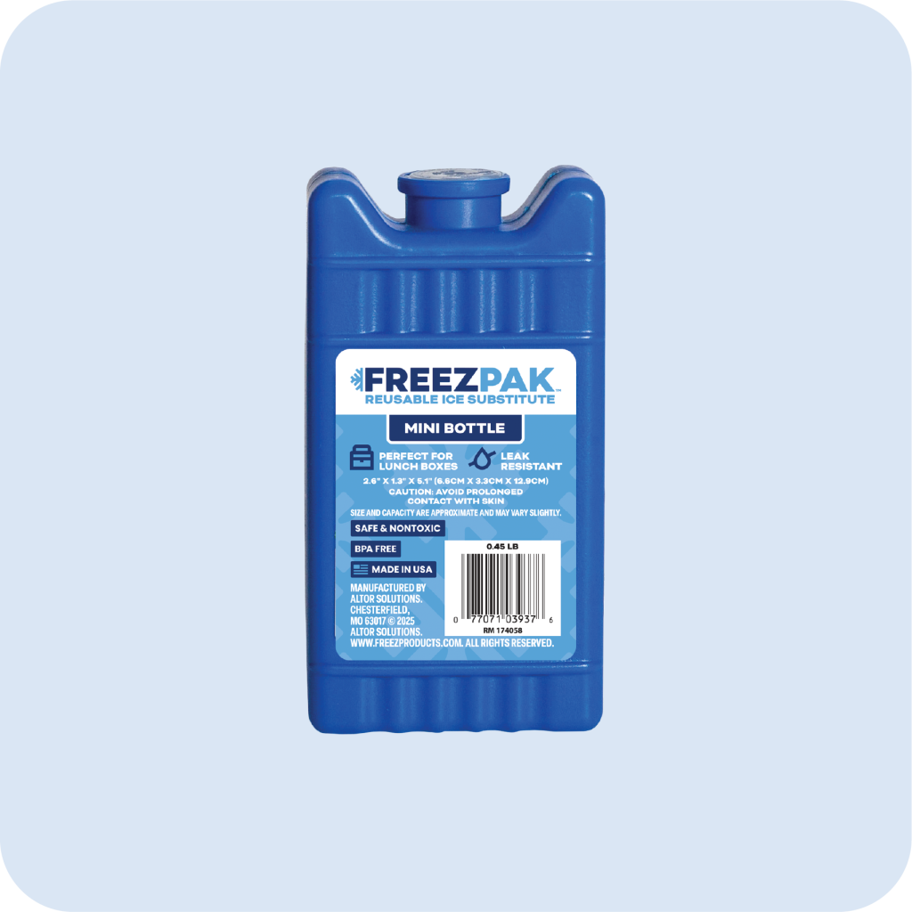 Perfectly sized for lunch boxes, daycare bags, and other compact spaces, the FreezPak™ Mini helps meals stay fresh until it’s time to eat.